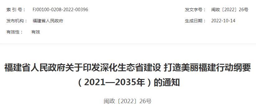 為深入貫徹落實習近平生態(tài)文明思想,貫徹落實習近平總書記對福建工作的重要講話重要指示批示精神,圍繞黨的十九大提出的2035年基本實現(xiàn)美麗中國目標,持續(xù)深化生態(tài)省建設,打造美麗福建,編制本行動綱要。行動綱要基準年為2020年,近期為2021—2025年,中遠期為2026—2035年。