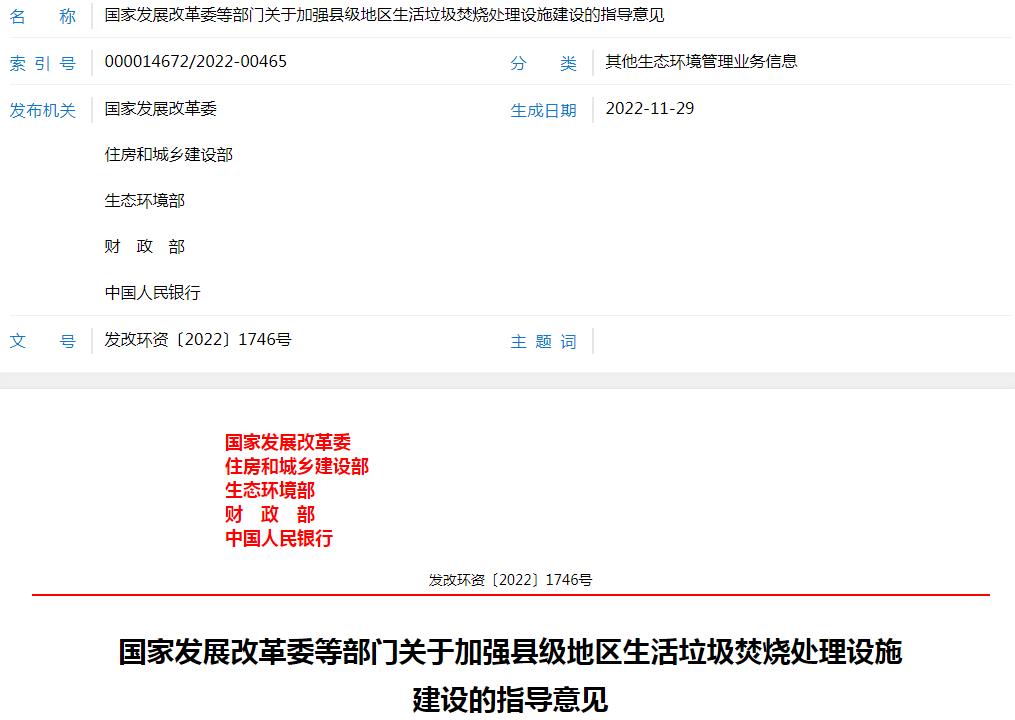 推進(jìn)城鎮(zhèn)生活垃圾焚燒處理設(shè)施建設(shè)是強(qiáng)化環(huán)境基礎(chǔ)設(shè)施建設(shè)的重要環(huán)節(jié)和基礎(chǔ)性工作。為全面貫徹落實(shí)黨的二十大精神,貫徹落實(shí)黨中央、國務(wù)院有關(guān)決策部署,加強(qiáng)縣級地區(qū)(含縣級市)生活垃圾焚燒處理設(shè)施建設(shè),加快補(bǔ)齊短板弱項(xiàng),經(jīng)國務(wù)院同意,現(xiàn)提出以下意見。