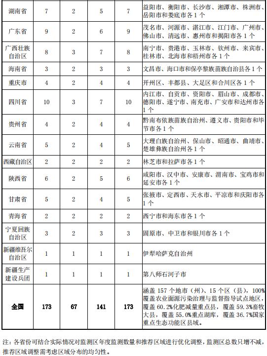 1.全國(guó)各省份農(nóng)業(yè)面源污染監(jiān)測(cè)區(qū)數(shù)量及推薦區(qū)域