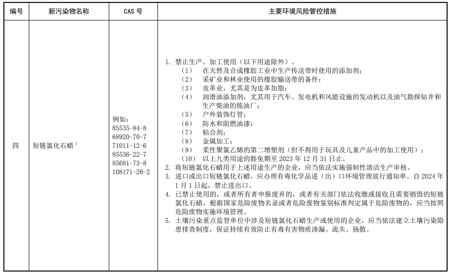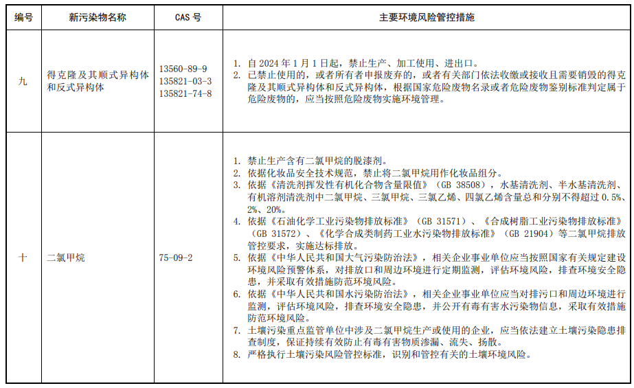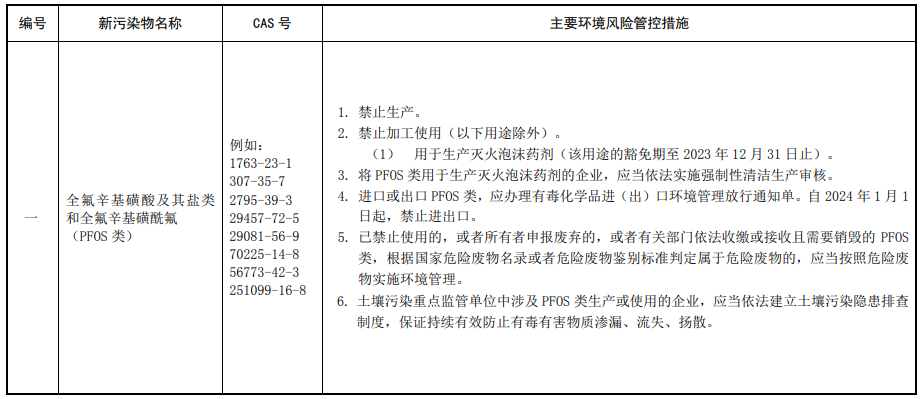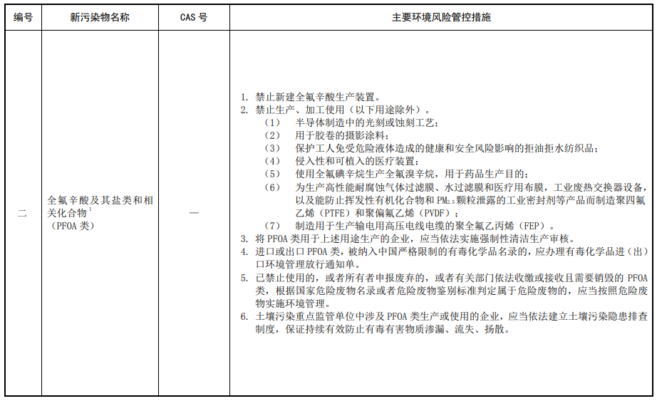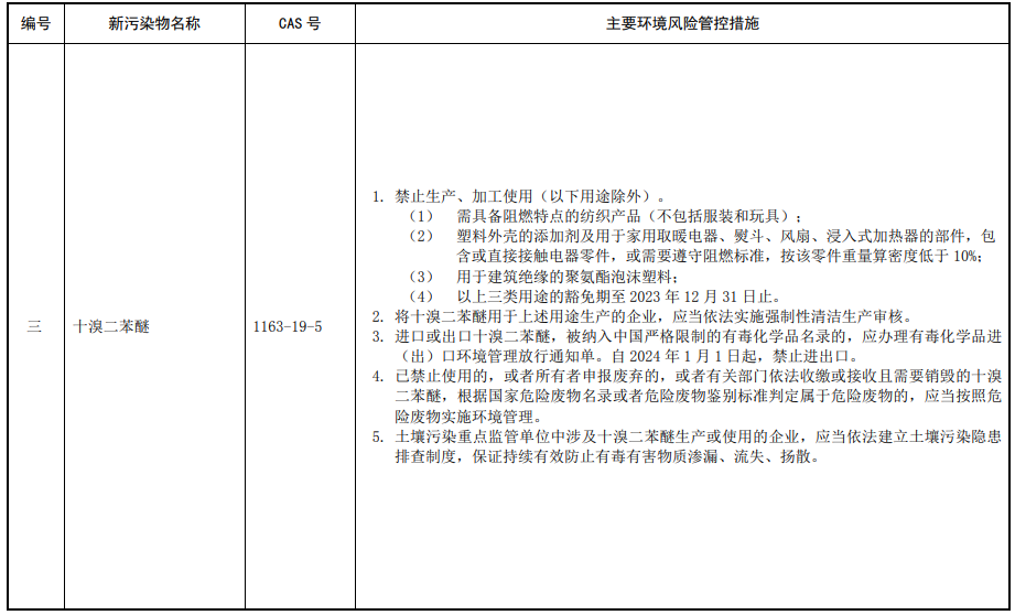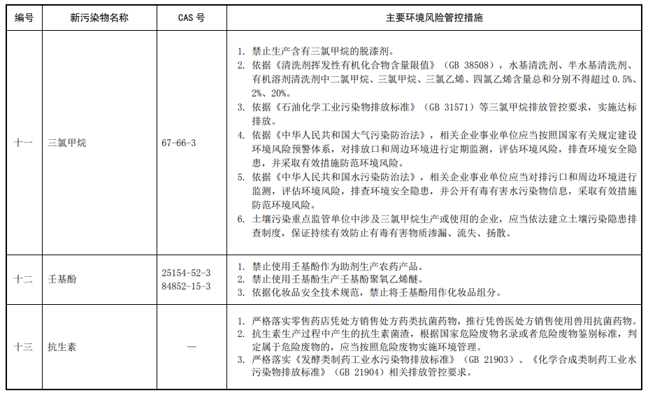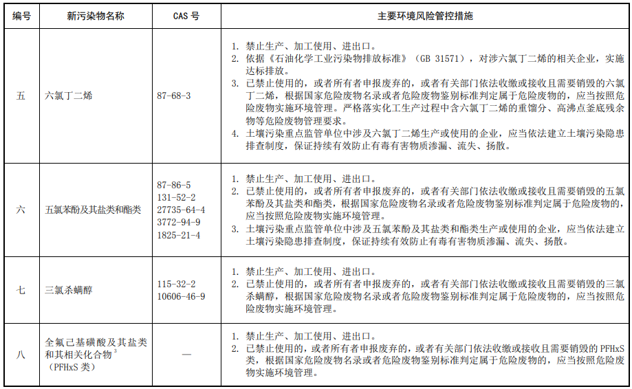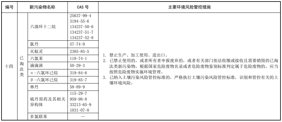 第三條 對列入本清單的新污染物,應當按照國家有關規(guī)定采取禁止、限制、限排等環(huán)境風險管控措施。